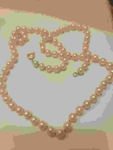 This item is a single-strand graduated pearl necklace featuring cream-to-white spherical beads. The design showcases a classic graduated style where the largest pearls are situated at the center front, tapering gradually to smaller pearls toward the clasp at the back. The beads exhibit a soft, reflective luster characteristic of cultured or high-quality glass faux pearls. The necklace appears to be individually knotted between each bead, a hallmark of traditional craftsmanship used to prevent the pearls from rubbing against one another and to ensure security if the strand breaks. The fastener is a metallic spring-ring clasp, which appears to be in working order, though the specific metal (e.g., sterling silver, gold-fill, or base metal) cannot be determined from the image resolution. Based on the silhouette and construction, this piece likely dates to the mid-20th century (circa 1940s-1960s), a period when graduated strands were a staple of feminine fashion. The overall condition looks fair to good, with no obvious missing beads, though there may be minor surface abrasions or slight stretching of the internal silk thread commensurate with age and frequent wear.