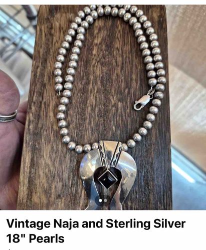Vintage Navajo Sterling Silver Naja Pendant and Navajo Pearl Necklace