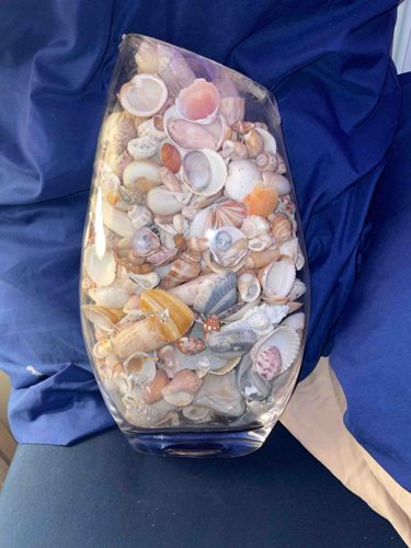 Tapered Clear Glass Vase with Assorted Seashells