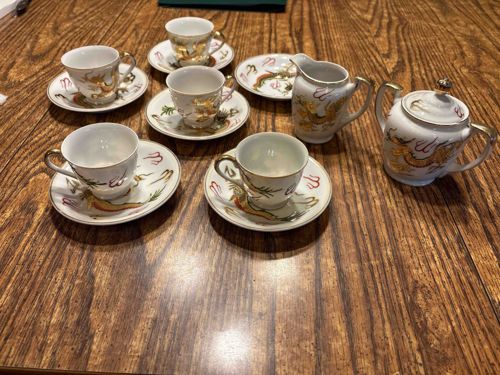 Vintage Japanese Lithophane Dragon Moriage Tea Set