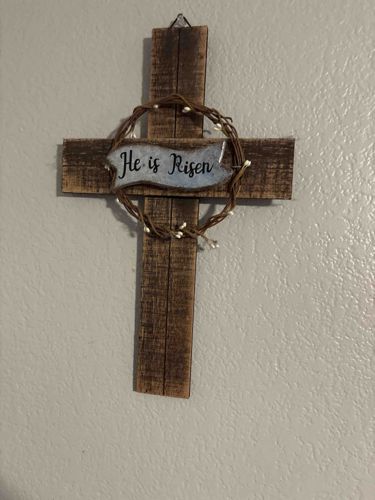 Rustic Wood Easter Wall Cross with 'He is Risen' Inlay
