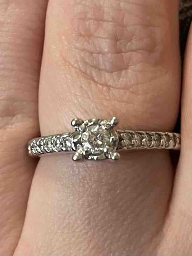 14k White Gold Diamond Solitaire with Sidestone Accents