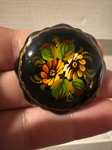 Russian Zhostovo Style Hand-Painted Lacquer Brooch