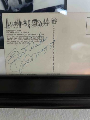 Joe DiMaggio Signed Candlestick Park Souvenir Postcard