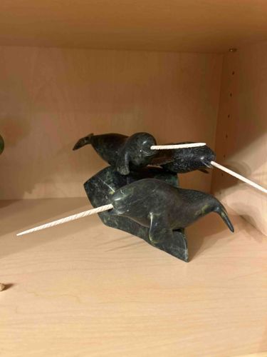 Inuit Soapstone Narwhal Pod Sculpture