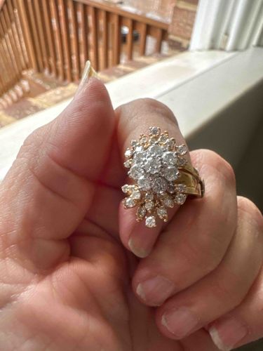 Vintage Diamond Cluster Ring with Integrated Enhancer Band