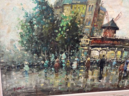 Impressionist Oil Painting of Moulin Rouge signed Loren
