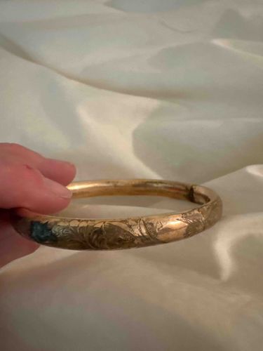 Victorian Style Etched Gold-Tone Hinged Bangle