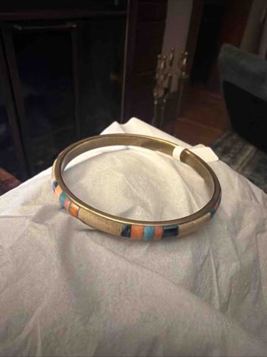 Southwestern-Style Bone and Stone Inlay Bangle Bracelet