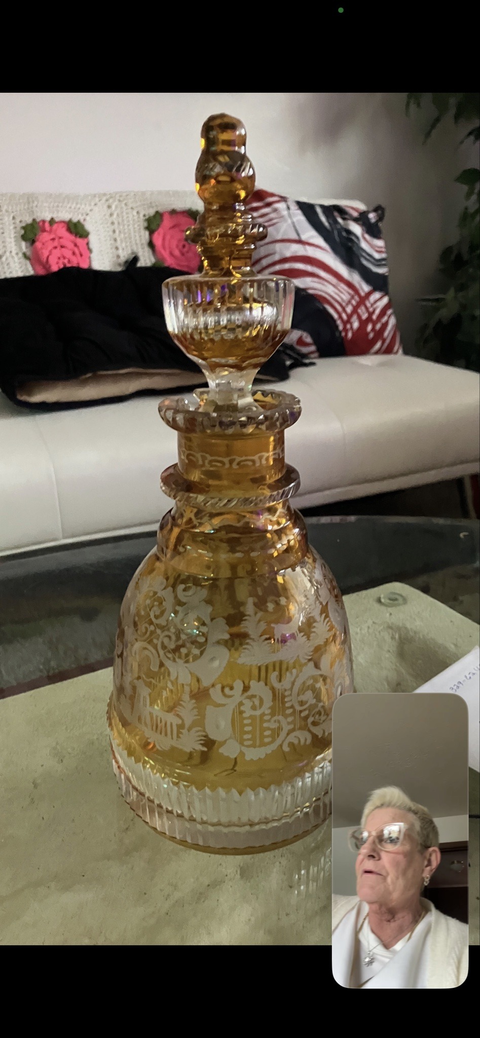 Bohemian Amber Stained Eglomisé Cut-to-Clear Glass Decanter with Stopper