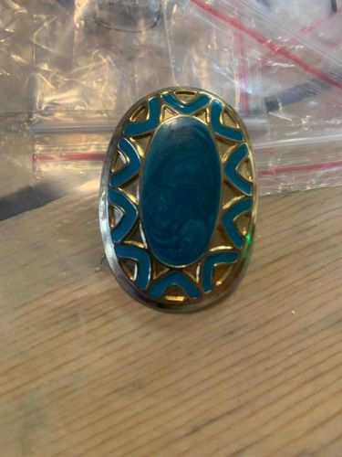 Vintage Gold-Tone and Teal Enamel Oval Brooch