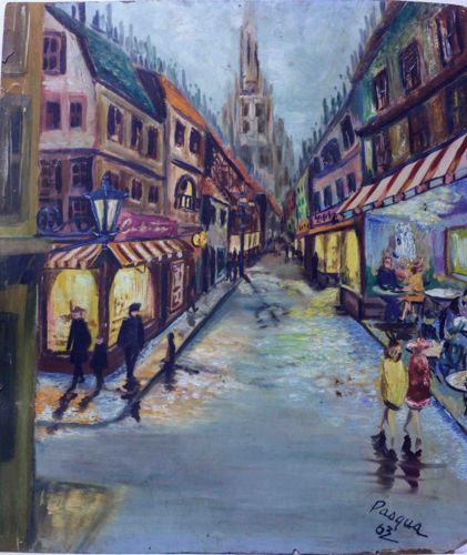 Mid-Century European Street Scene Painting by Pasqua
