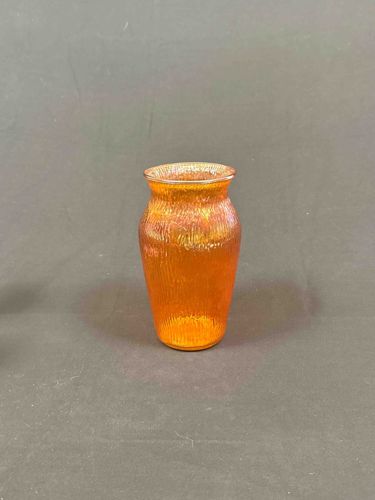 Marigold Iridescent Bark-Textured Carnival Glass Vase
