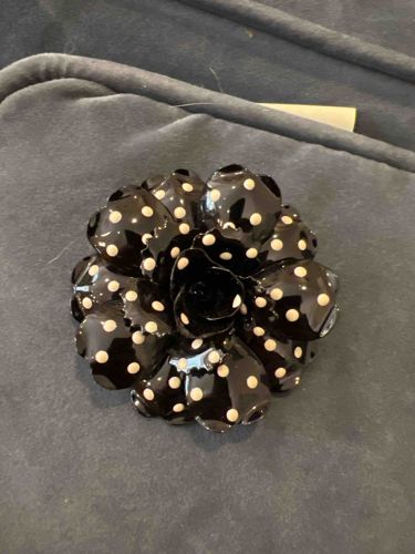 Joan Rivers Vintage Black and White Polka Dot Camellia Rose Brooch