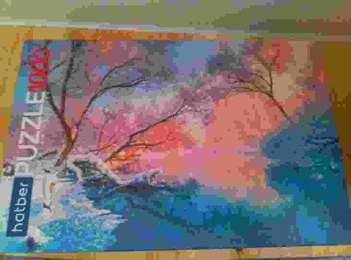This is a 1000-piece jigsaw puzzle manufactured by the brand Hatber. The packaging features a vibrant, atmospheric landscape image characterized by a striking sunset or sunrise palette. The art style is painterly and impressionistic, showcasing silhouettes of bare winter trees against a sky filled with hues of deep pink, orange, violet, and soft blue. In the foreground, there are elements suggesting a frozen or wintry water feature with reflective qualities. The box design is professional, with the brand name 'hatber' clearly visible in a blue-and-white logo on the left side, accompanied by the bold text 'PUZZLE 1000' in red and white lettering. The puzzle is likely made of standard die-cut cardboard with a linen or gloss finish on the printed surface. Regarding condition, the box appears intact, though the low image quality makes it difficult to assess fine corner wear or structural integrity. Based on the branding and graphic design, this item likely dates between 2010 and the present. Hatber is a well-known stationery and hobby products manufacturer, often associated with the Russian market, which suggests a standard mass-market level of craftsmanship and piece durability.