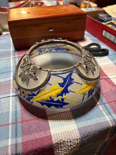 Art Nouveau Legras-style Enameled Glass Bowl with Pewter Overlay