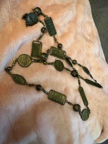 Vintage Mixed Geometric Link Necklace with Silk Thread Wrap detailing