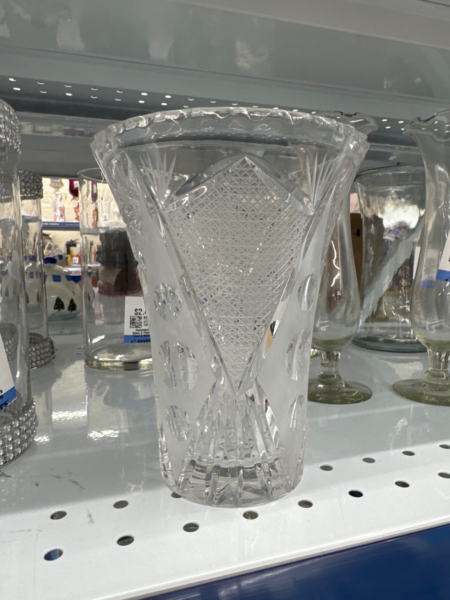 Pinwheel and Crosshatch Cut Crystal Trumpet Vase
