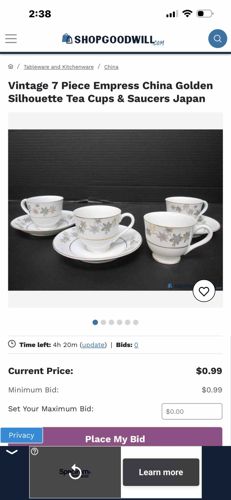 Vintage 7 Piece Empress China Golden Silhouette Tea Cups & Saucers Japan