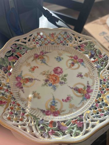 Dresden-Style Hand-Painted Reticulated Porcelain Compote or Cabinet Plate