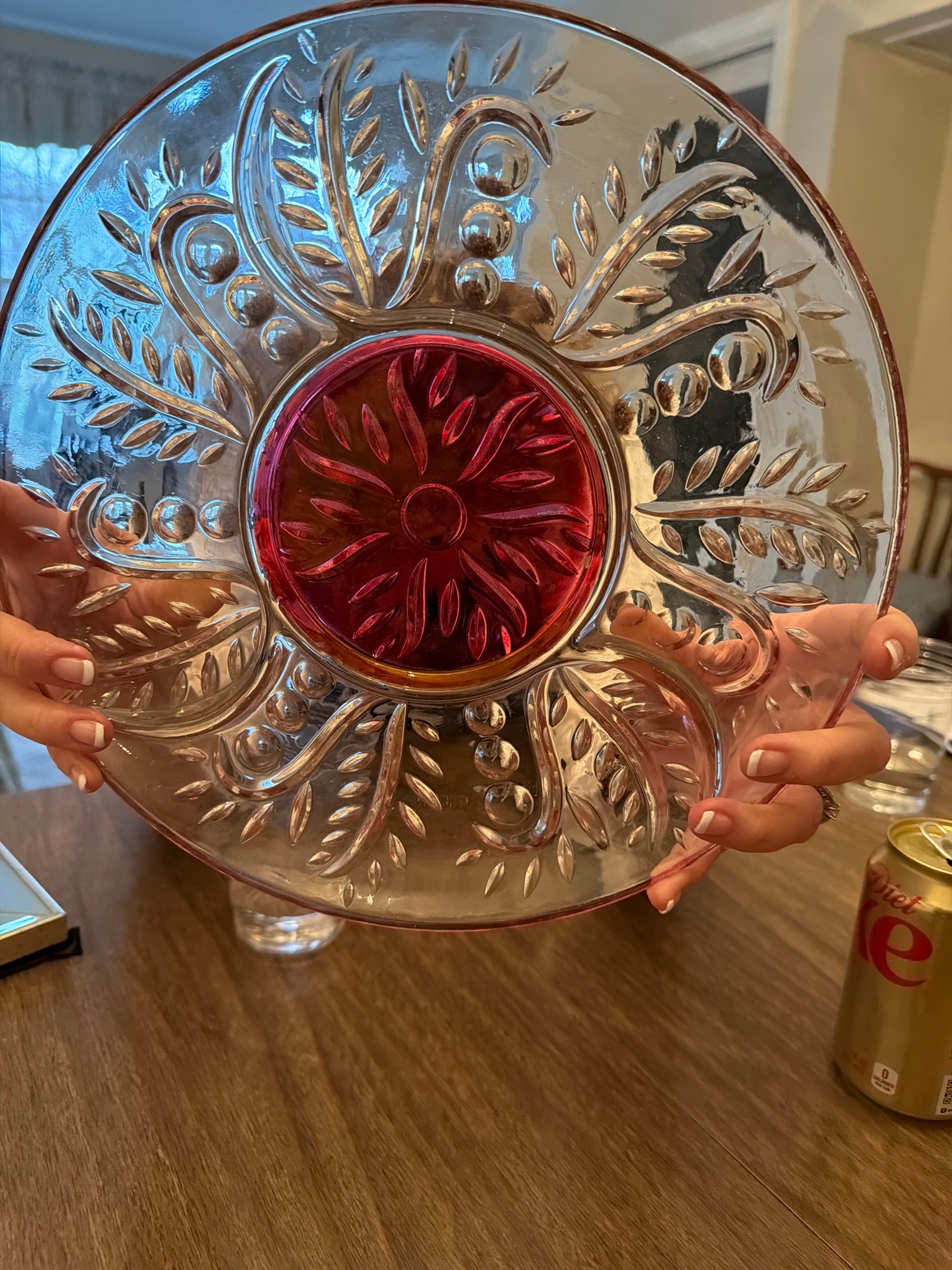 Indiana Glass Sandwich Pattern Cranberry/Amberina Round Platter