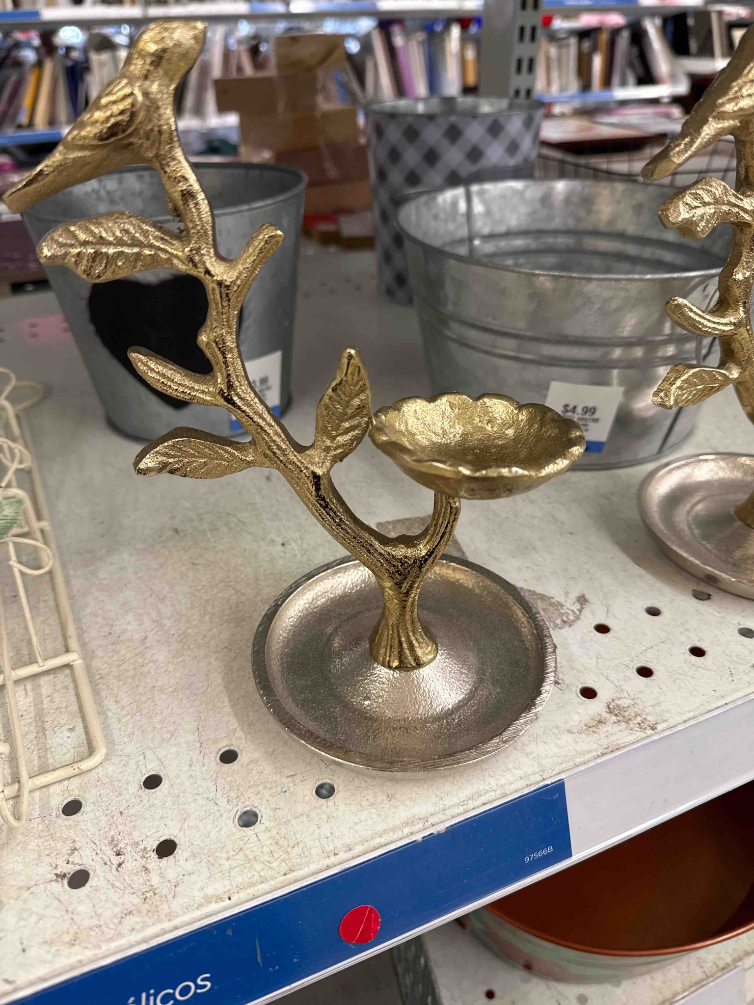 Gold-Tone Metal Decorative Bird Tealight Candle Holder on Branch