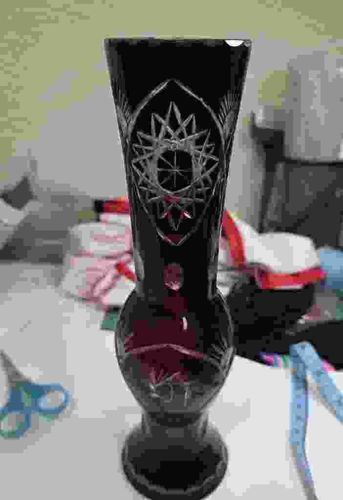 Bohemian Ruby Red Cut-to-Clear Cased Glass Vase