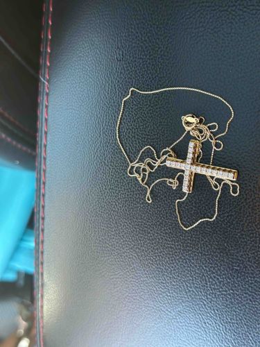 14k Gold-Plated Diamond Cross Pendant and Chain
