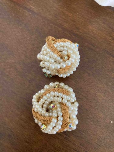 Vintage Faux Pearl and Gold-Tone Mesh Knot Clip-On Earrings