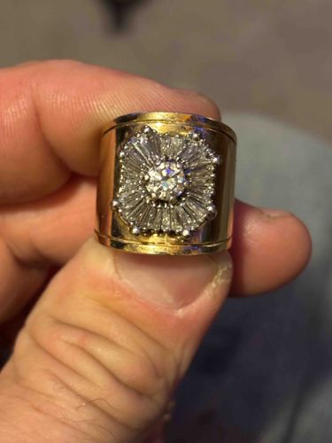 Vintage Men's Gold and Diamond Baguette Sunburst Cigar Band Ring