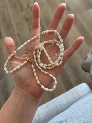 Freshwater Rice Pearl Necklace with Gold Spacer Beads