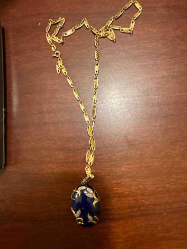 Lapis Lazuli and Gold Foliate Statement Necklace