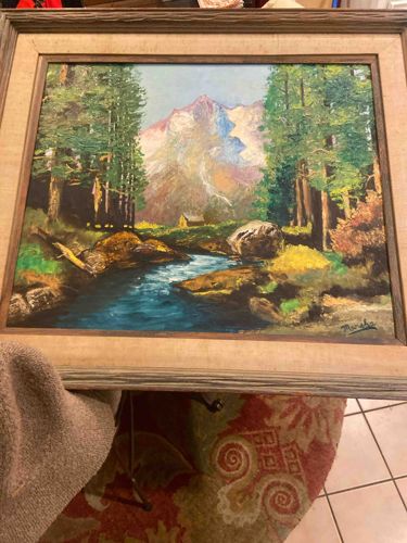 Mid-Century Mountain Landscape Oil Painting Signed 'Marsha'