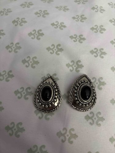 Vintage Southwestern-Style Sterling Silver and Onyx Teardrop Clip-on Earrings
