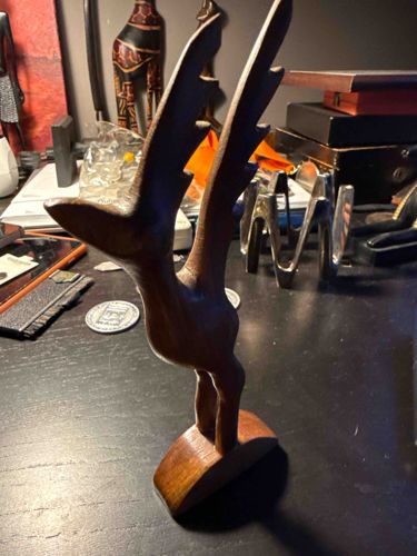 Mid-Century Modern Hand-Carved Wood Gazelle Sculpture