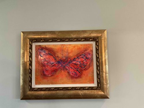 Modern Abstract Butterfly Painting in Gilt Frame