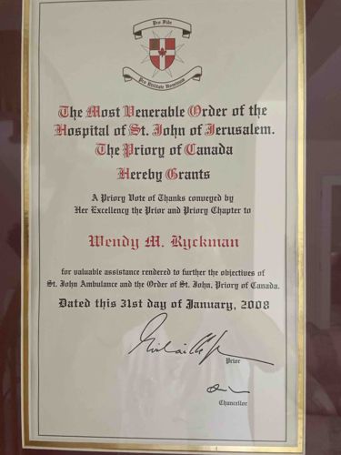 Priory Vote of Thanks, The Most Venerable Order of the Hospital of St. John of Jerusalem (Priory of Canada)