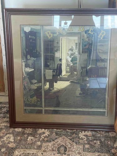 Framed Norman Rockwell Print: Shuffleton's Barbershop