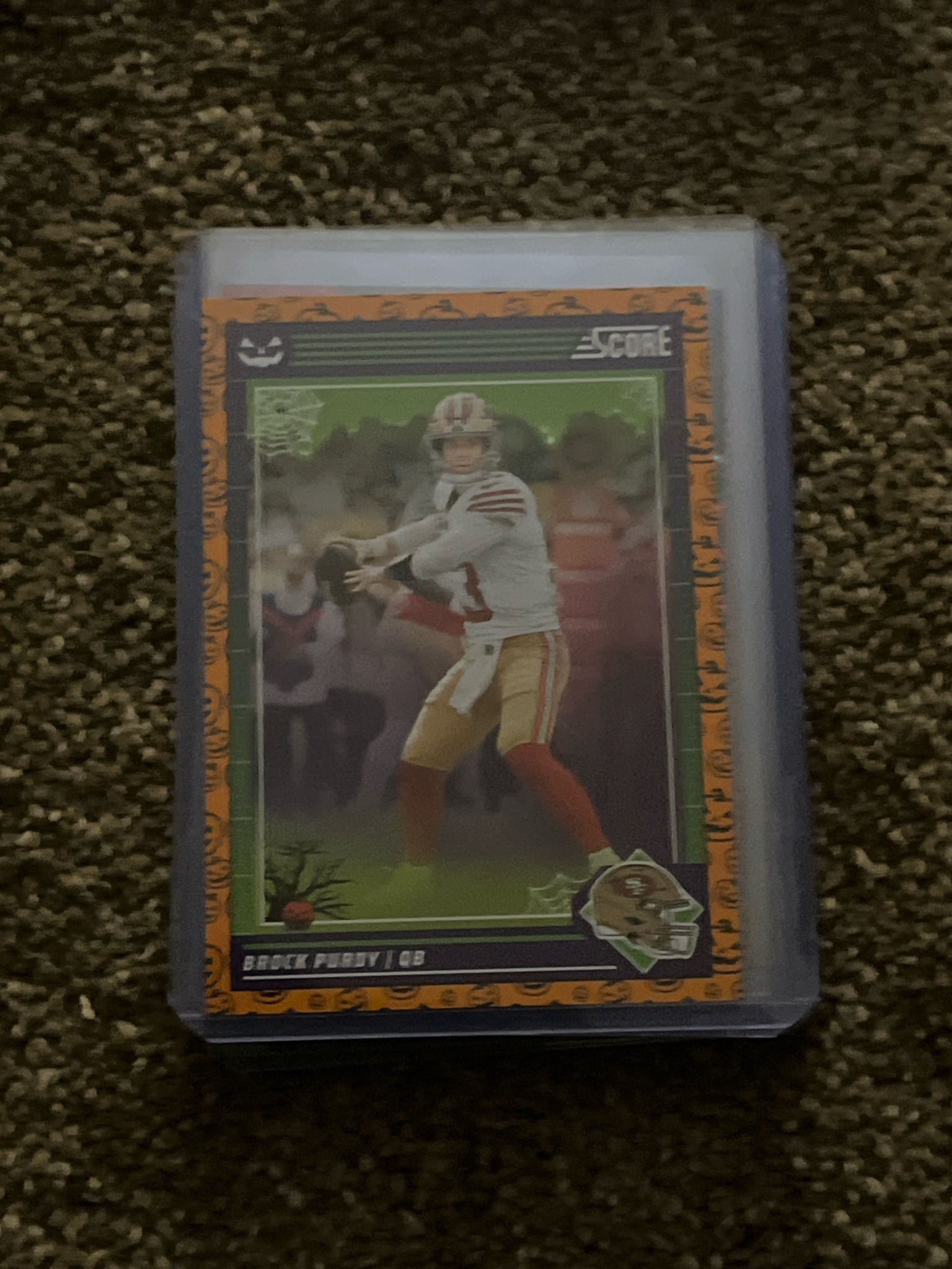 2023 Panini Score Football Brock Purdy 'Trick or Treat' Jack-O'-Lantern Parallel