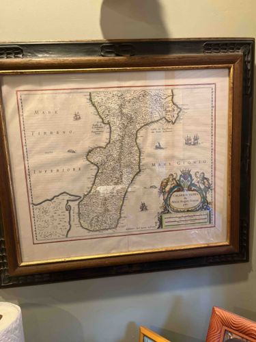 Framed 17th Century Map of Calabria Ultra by Willem Blaeu