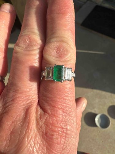 Art Deco Style Emerald and Diamond Three-Stone Ring
