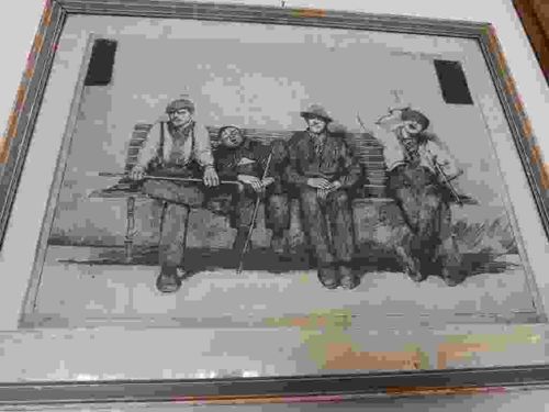 Framed Sketch of Four Men on a Bench