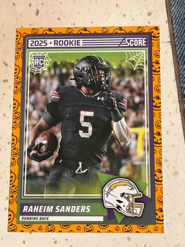 2025 Panini Score Raheim Sanders Rookie Card - Halloween Jack-O'-Lantern Parallel