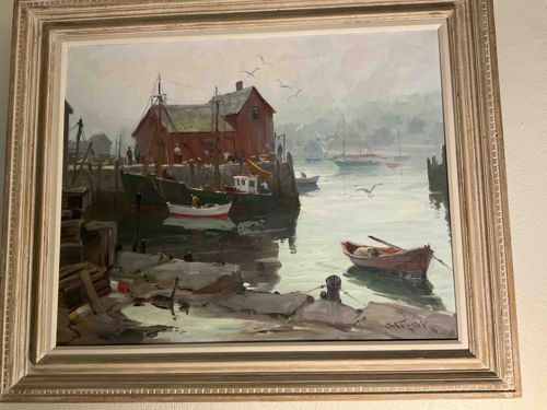 Paul Strisik Nautical Harbor Scene Oil Painting