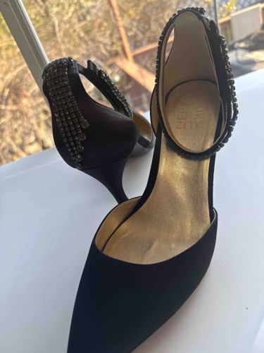 Naturalizer Embellished Black Satin Evening Pumps