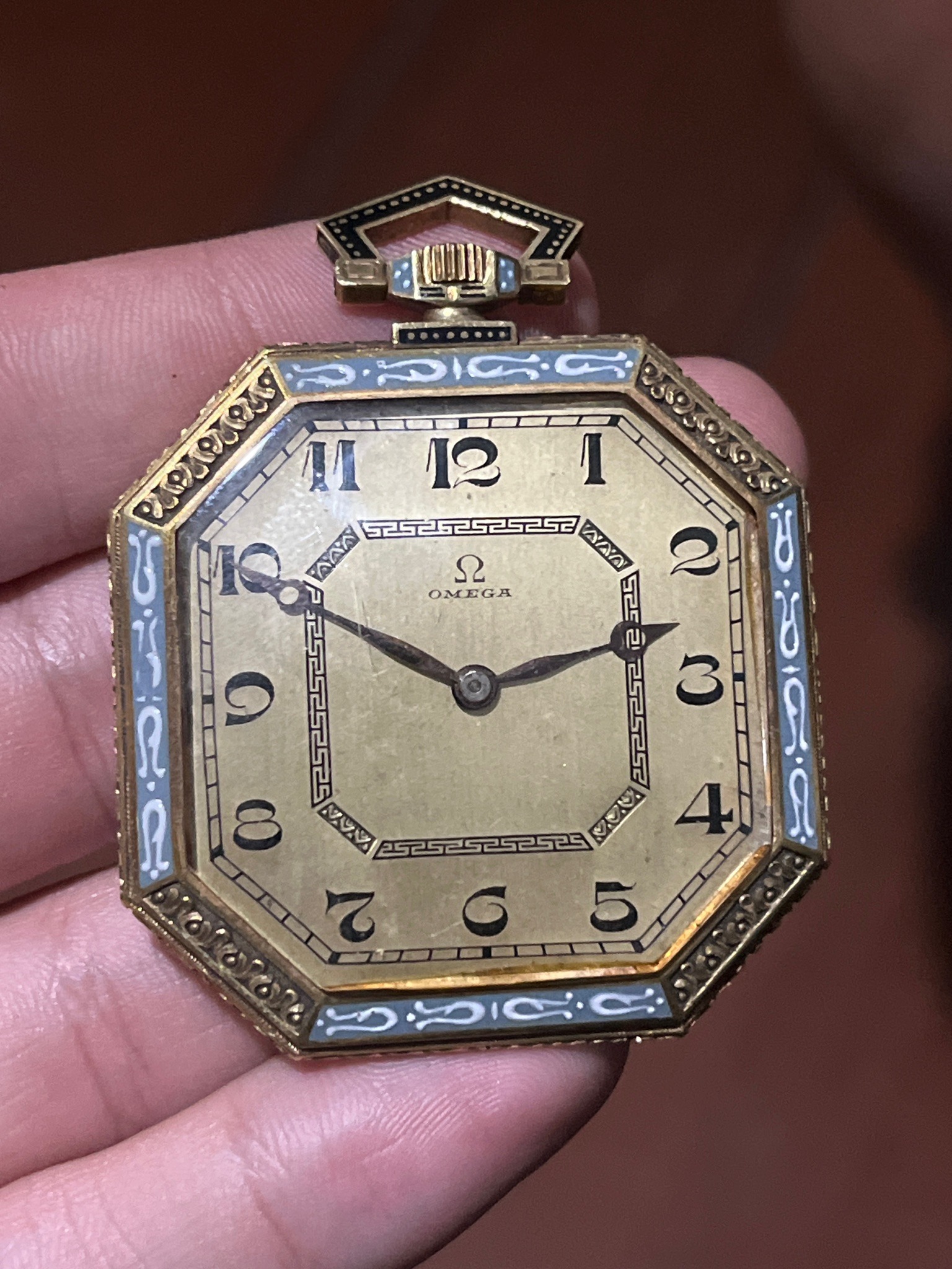 Vintage Omega Art Deco Octagonal Pendant/Pocket Watch with Champlevé Enamel