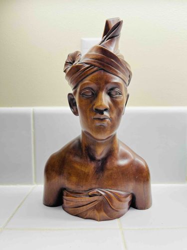 Balinese Art Deco Hand-Carved Wooden Bust of a Man