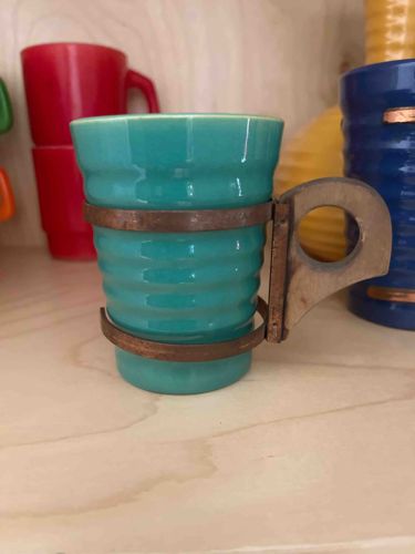 Bauer Pottery Ringware Tumbler with Fred Kaye Copper Handle-Carrier