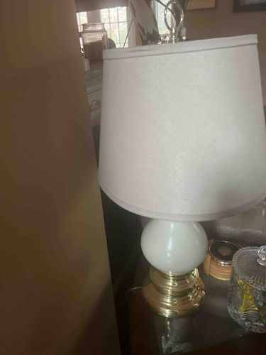 Mid-century Contemporary White Ceramic and Brass Table Lamp