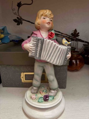 Musical Porcelain Figurine of a Girl Playing Accordion
